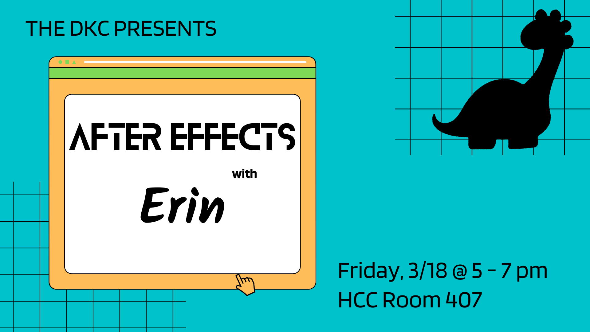After Effects is an Adobe product used for making digital visual effects and animated graphics. Join the DKC staff as our consultant Erin leads us through the creating with this tool!